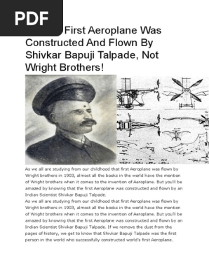 Shivkar Bapuji Talpade Photos : Prepared and flew aircraft eight years before wright brothers. Shivkar Bapuji Talpade Photos / Talpade lived in bombay and was a scholar of sanskrit literature and the vedas.